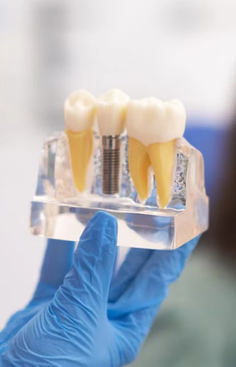 Com o implante já integrado ao osso, é fixada uma prótese dentária sobre ele, que pode ser uma coroa unitária, ponte ou prótese total. Essa etapa finaliza o tratamento, devolvendo ao paciente a função mastigatória, a estética do sorriso e o conforto ao falar.